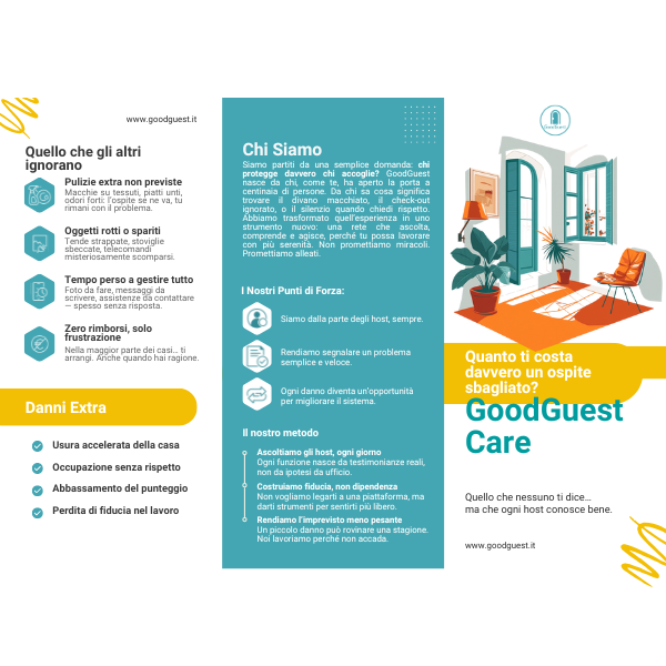Tutti i benefici per gli host che scelgono GoodGuest: visibilità, sicurezza, fidelizzazione e una community costruita sul rispetto reciproco.